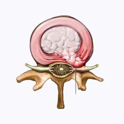 Sciatica, which is pain, weakness, or tingling that extends down the leg from a disc pressing on a nerve root.